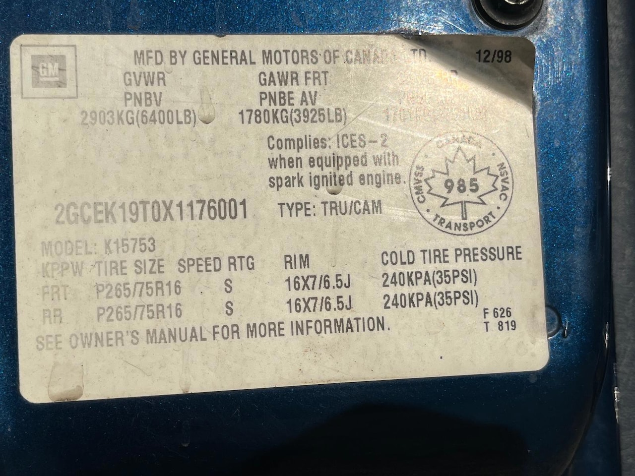 1999, LPG, Automaat, Pick-up, Blauw