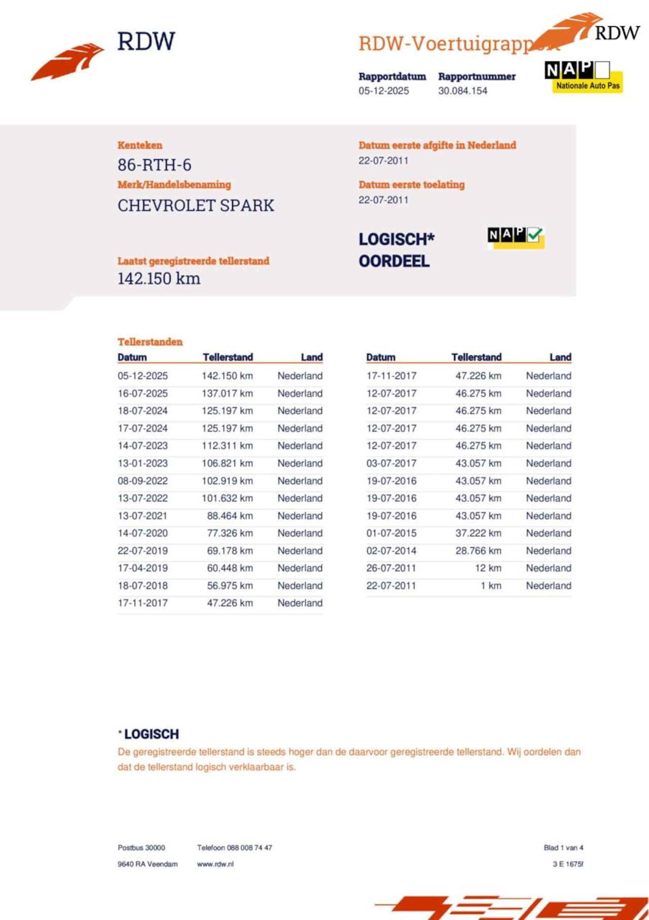 | Kilometerstand | 142.166 km |