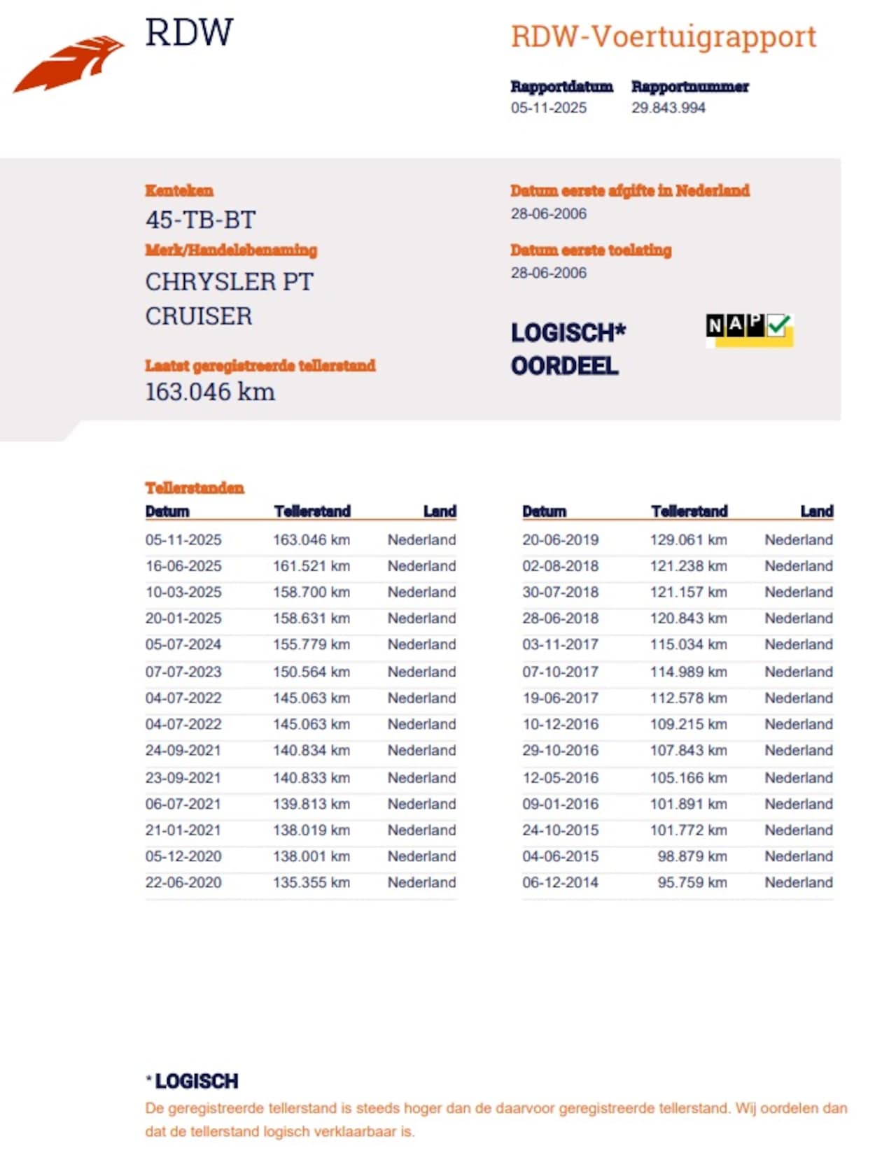 | Kilometerstand | 163.046 km |
