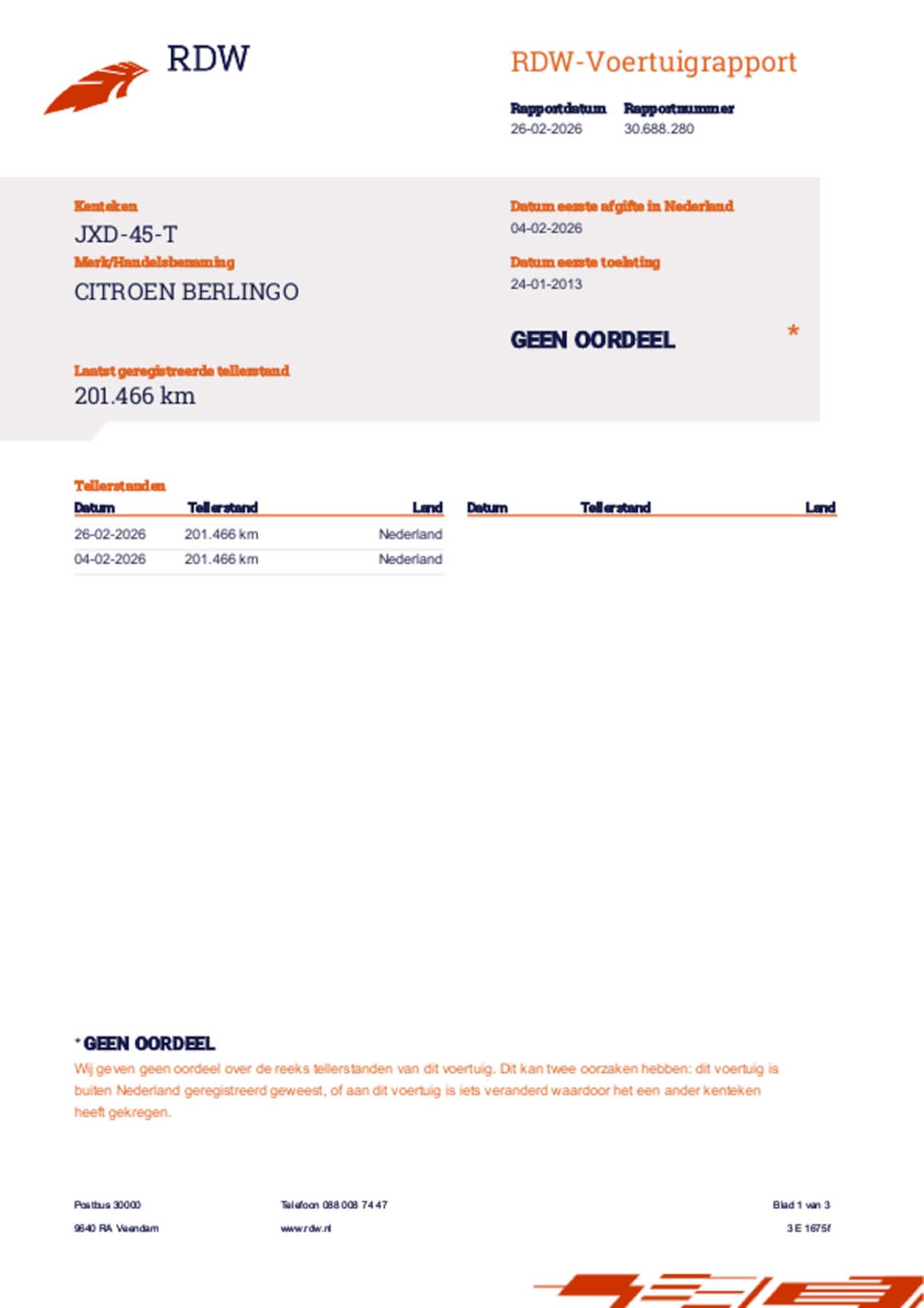Bij aflevering