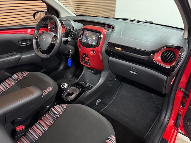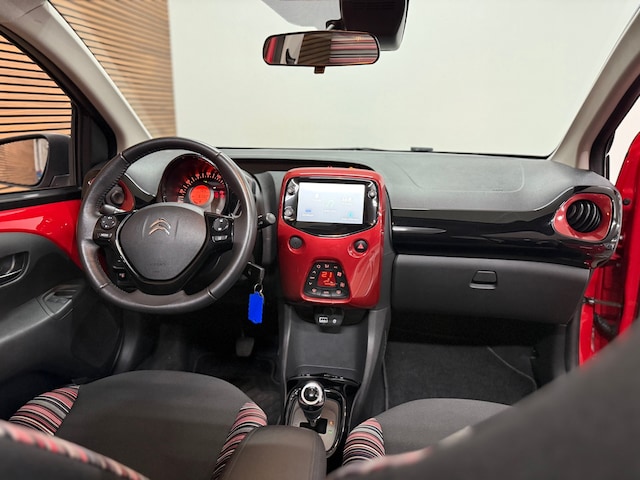 Hoe leuk is dit!? Een Citroen C1 1.0 VTI Feel Airscape (Cabriolet) met een automaat! Lekker opvallend rood met veel zwarte accenten als dak, spiegels en lichtmetalen velgen. Verder voorzien van achteruitrijcamera, stoelverwarming, elektrische spiegels, climate control en elektrisch bedienbaar dak.