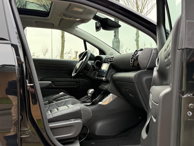 Bij het ontwerpen van de Citroen C3 AIRCROSS stonden uw comfort en uw veiligheid centraal. De aandrijving van deze Citroen wordt verzorgd door een driecilinder motor en een automatische transmissie. De stijlvolle, luxe uitstraling is inbegrepen in de vorm van leren bekleding. Comfort en een gevoel van luxe: dat geeft de heerlijke stoelverwarming. Licht en luchtpartijen: u krijgt ze bijgeleverd dankzij het glazen panoramadak. Ook 17 inch lichtmetalen velgen, LED koplampen, halflederen bekleding, donker getint glas achter, in delen neerklapbare achterbank en snelheidsafhankelijke stuurbekrachtiging horen tot de voorzieningen op deze auto.