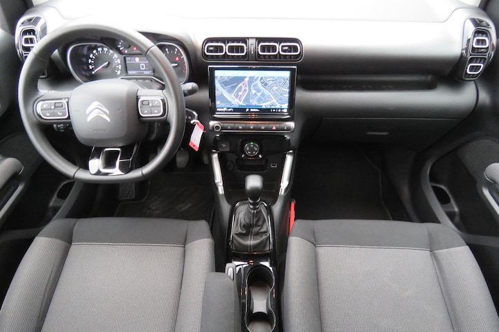 Dankzij Connected Services weet je precies waar je auto geparkeerd staat. Ook andere functies, zoals bandenspanning en brandstofniveau, zijn via de app altijd onder handbereik. In deze auto word je elke rit opnieuw bijgestaan door een gebruiksvriendelijk navigatiesysteem, terwijl je luistert naar het glasheldere geluid van het audiosysteem met DAB-radio. Te weinig afstand tussen u en de achterligger? De sensoren registreren het direct en de achteropkomend verkeer waarschuwing geeft een signaal. De auto is ook uitgevoerd met automatische airconditioning. Boem is ho? Niet bij deze Citroen C3 Aircross. De piepjes van de parkeersensoren waarschuwen je op tijd voor obstakels. De uitrusting van deze Citroen is met dashboard met spraakbediening, regensensor, cruise control, automatisch dimmende binnenspiegel, lederen stuur en centrale deurvergrendeling met afstandsbediening behoorlijk compleet.