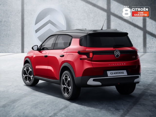 Nieuwe Citroën C3 Aircross direct uit voorraad leverbaar. Andere looptijd/kilometrage is mogelijk. Nieuwe auto zonder kilometers met kentekenregistratie 28-11-2025. Mild-Hybride145pk Automaat in meest luxe 'Max' uitrusting met o.a.in de metallic kleur Mercury Grey i.c.m. Zwart dak, Achteruitrijcamera, Navigatiesysteem, Draadloze telefoonlader, Draadloos Apple Carplay / Android Auto, Advanced Comfort Seats met 15mm extra schuimvulling. Tot 8 jaar / 160.000 km Citroën WeCare garantie. Normaal € 35.280, nu rijklaar € 33.180,-