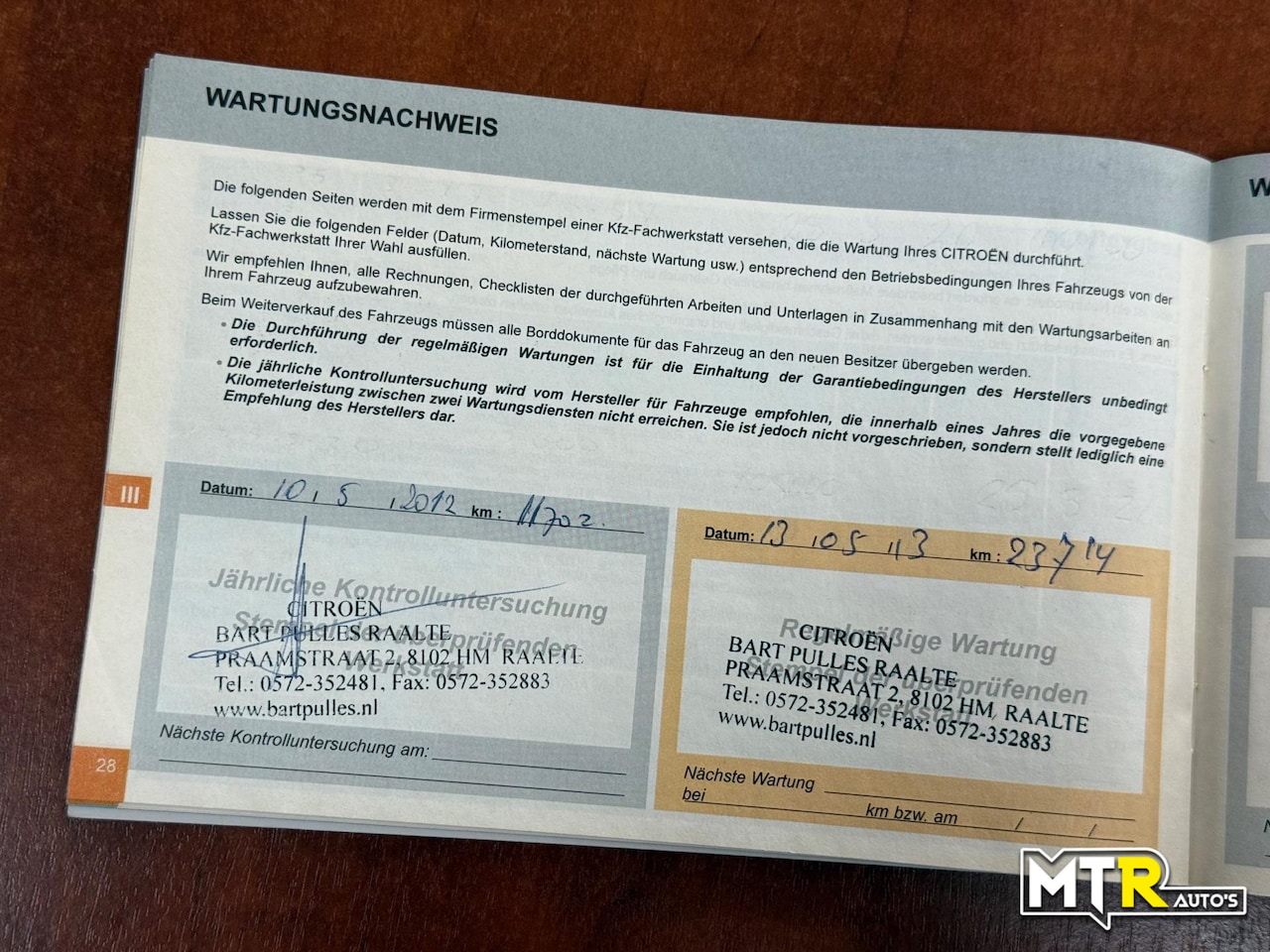 | APK | Bij aflevering |