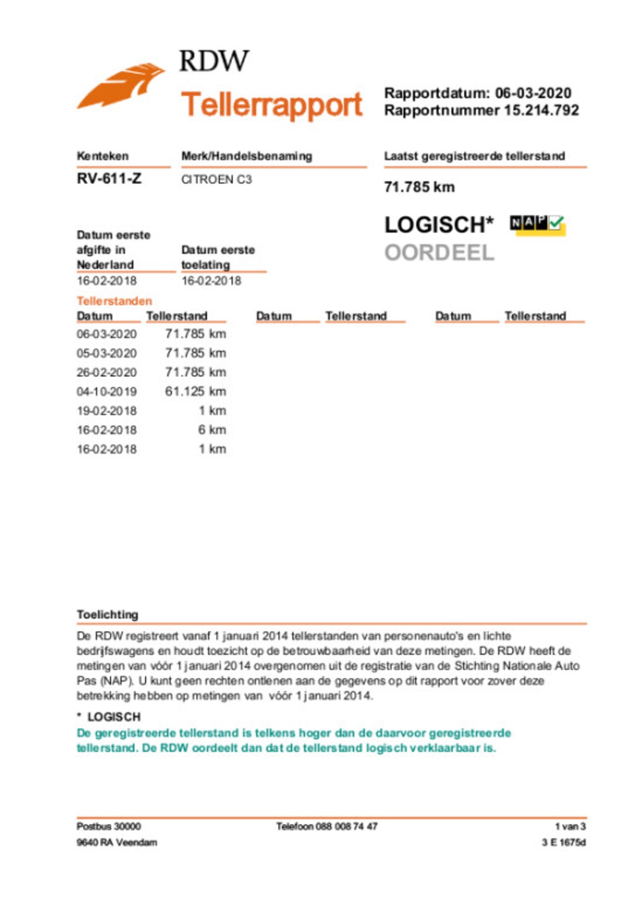 | Kilometerstand | 71.785 km |
