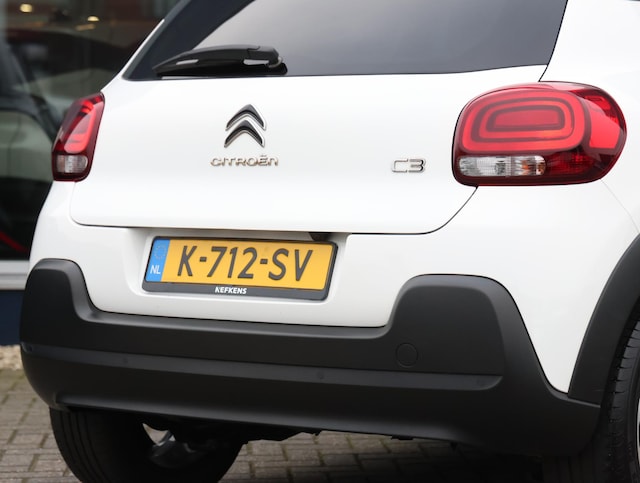 Niets achter deze auto blijft verborgen door de achteruitrijcamera. Een veilig gevoel! Met uw smartphone maakt u overal contact met de auto. Remote services geven direct inzicht in uiteenlopende functies en zijn op afstand te activeren. Uw veiligheid op de weg wordt verhoogd door het audiosysteem met DAB-ontvangst en het full map navigatiesysteem te bedienen vanaf het stuur of met spraakbediening, zodat uw handen veilig op het stuur blijven en uw ogen gericht zijn op de weg. Omdat u nu eenmaal niet overal ogen heeft, is deze Citroen C3 voorzien van een achteropkomend verkeer waarschuwing die registreert wanneer de afstand tot uw achterligger te krap is. Nooit meer te warm of te koud. De automatische airconditioning zorgt altijd voor de temperatuur die u kiest. De Citroen is standaard voorzien van: regensensor, cruise control, automatisch dimmende binnenspiegel, lederen stuur, centrale deurvergrendeling met afstandsbediening en boordcomputer.