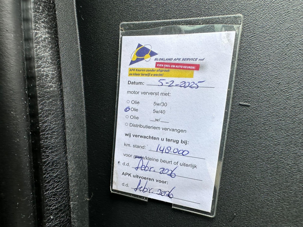 | APK | Bij aflevering |