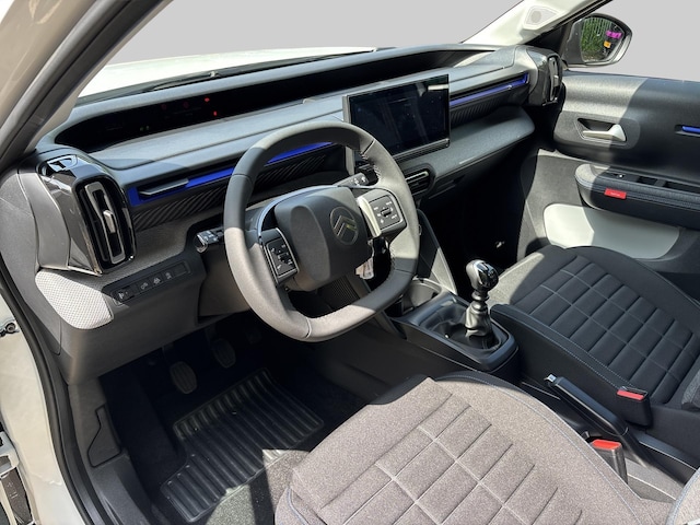 Aan de buitenzijde valt deze C3 op met zijn stoere SUV-invloeden, matzwarte wielomlijsting, dakrails, en 17” stalen velgen met wieldoppen ‘Sylvanite’. De stijlvolle details worden afgemaakt met kleuraccenten (‘Color Clips’) die perfect matchen met de gekozen lakkleur.