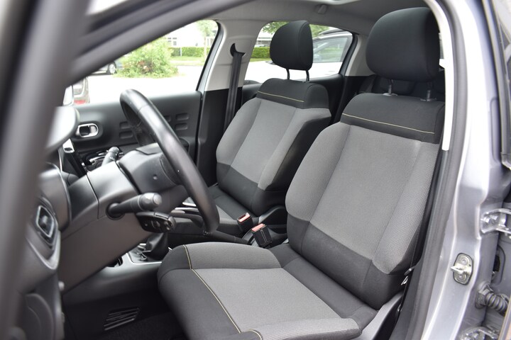 Zoals u mag verwachten van deze Citroën C3 is hij uitgerust met een reeks aan actieve veiligheidssystemen. Dat de auto steeds meer taken van de bestuurder overneemt, merkt u bijvoorbeeld aan het systeem voor verkeersbord-detectie in deze Citroën. Ongemerkt buiten de rijstrook raken? Nee hoor, het Lane-keeping systeem waarschuwt en corrigeert. Mindert een voorligger onverwachts te veel vaart, dan komt de forward collision warning in actie en waarschuwt meteen. Met voorzieningen als hill hold functie, brake assist, vermoeidheidsherkenning en bandenspanningcontrolesysteem, bent u altijd veilig onderweg.