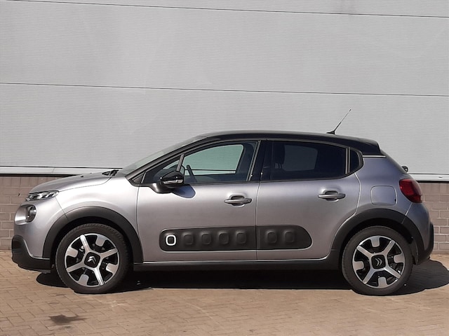 Deze Steel Grey metallic Citroen C3 is van bouwjaar 2020 en voorzien van de krachtige 110 pk sterke benzinemotor in combinatie met een handgeschakelde versnellingsbak.