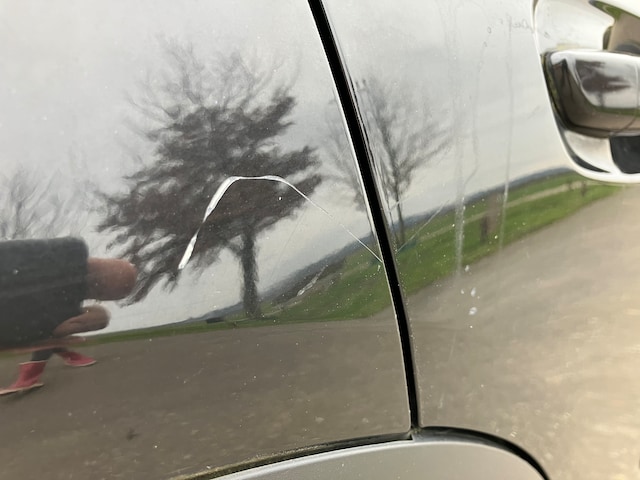Naast de achterdeur sit één kras aan de passagierszijde, en het raamrubber aan de bestuurderszijde is licht beschadigd. Voor de rest wat kleine onvolkomenheden in de lak, maar geen schades. Deze heeft de auto ook niet gehad.