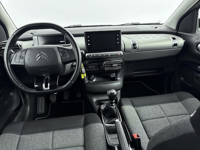 Het personaliseren van uw cockpitinterface is mogelijk met het digitale dashboard in deze auto. 'Boem is ho'? Niet met deze achteruitrijcamera. U ziet achter net zo goed als voor en krijgt een duidelijk geluidssignaal! Hoe is het met de banden, de accu en andere onderdelen? Connected Services maakt het inzichtelijk, 24/7 via de app. Onderweg kunt u veilig genieten van het audiosysteem met DAB-radio en het full map navigatiesysteem. Want in deze Citroen bedient u ze vanaf het stuurwiel of met uw stem. Of het buiten nu warm is of koud, dankzij automatische airconditioning is het binnen altijd behaaglijk. Natuurlijk behoren regensensor, cruise control, automatisch dimmende binnenspiegel, lederen stuur en centrale deurvergrendeling met afstandsbediening ook tot de uitrusting van deze complete auto.
