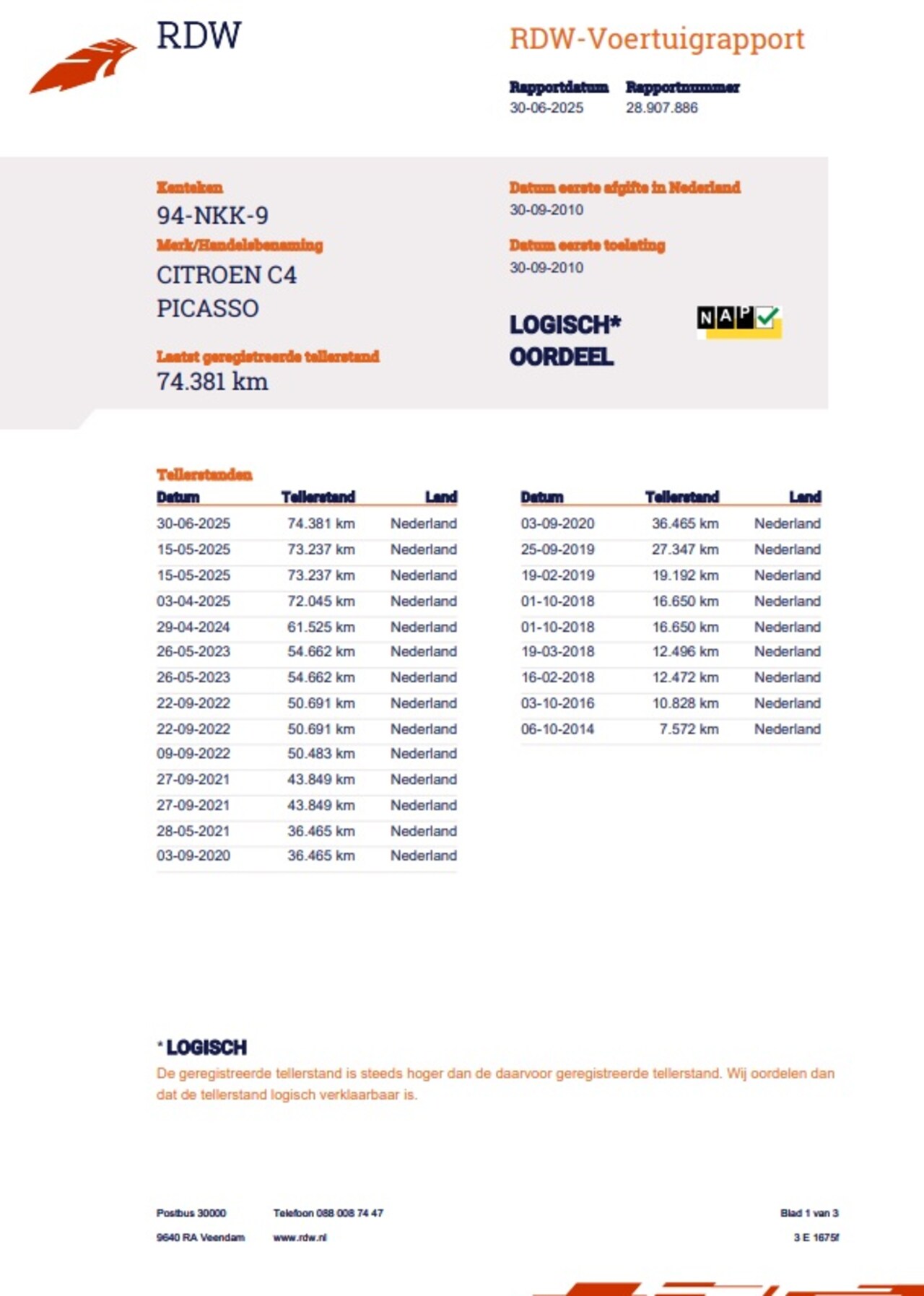| Kilometerstand | 74.381 km |