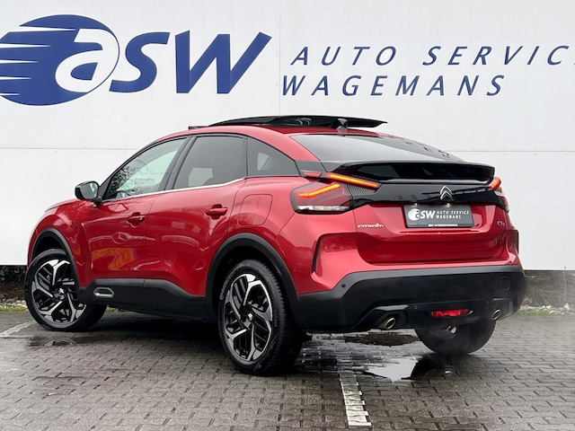 Techniek en design helemaal van nu. Kilometerstand van gisteren. Deze bijna-nieuwe Citroën C4 heeft z'n nestveren afgeschud en is klaar om te vliegen. Deze auto is bijna nieuw, ondanks dat hij uit 2023 komt; hij heeft slechts 29832 kilometer afgelegd. Een krachtige driecilinder benzinemotor en een prettige automatische transmissie zorgen voor de aandrijving van deze stoere Citroën. Kent u het gevoel van een elektrisch bediend glazen panorama dak? Wij zeggen: licht, lucht en ruimte. En dan hebben we het nog niet eens over de luxe sensatie van het lederen interieur. Winterse omstandigheden? Geniet dan van het comfort van de stoelverwarming! De uitmonstering van deze auto wordt gecompleteerd door onder meer 18 inch lichtmetalen velgen, Full LED koplampen, halflederen bekleding, adaptief dempingsysteem, geluidsisolerende ramen en in delen neerklapbare achterbank.