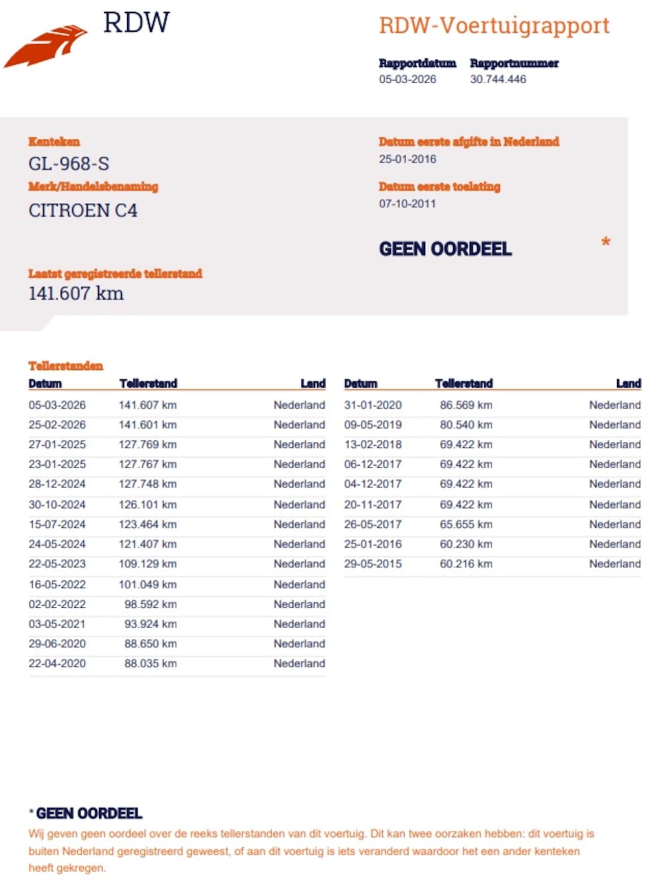 | Kilometerstand | 141.607 km |