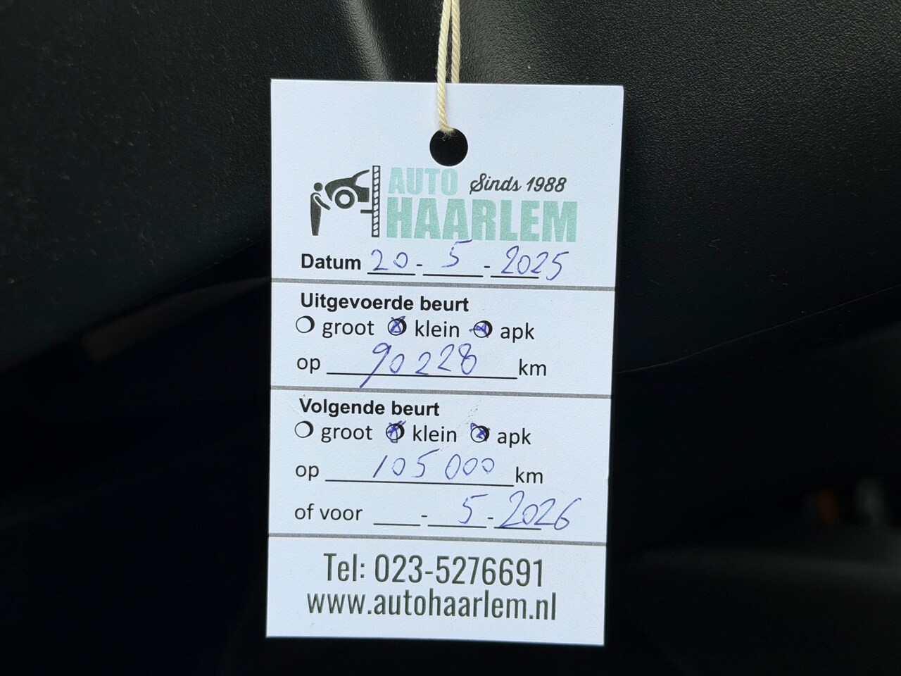 | APK | Bij aflevering |