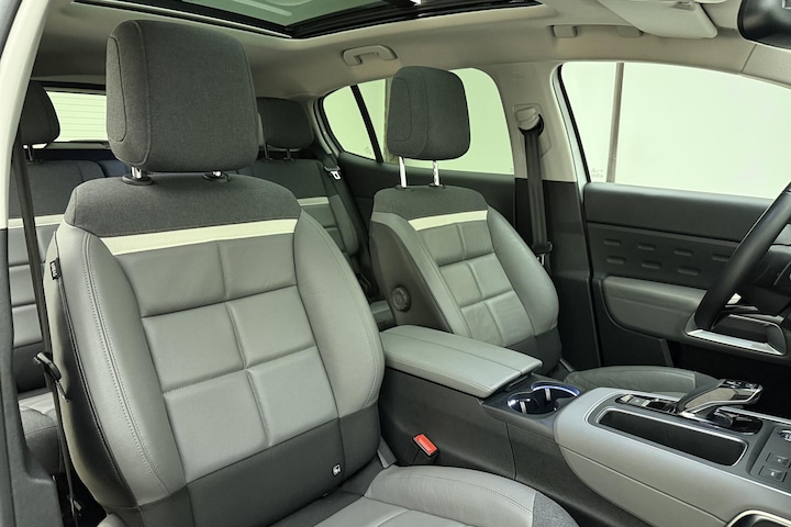 Met zijn elegante lijnen is de Citroen C5 Aircross beslist een representatieve auto. Achter het stuur geniet u bovendien van zijn uitstekende rijkwaliteiten. De aandrijving van deze Citroen wordt verzorgd door een driecilinder benzinemotor en een automatische transmissie. Ga samen met uw bijrijder lekker zitten in de verwarmbare voorstoelen. Schouders en onderrug krijgen een VIP-behandeling door de comfortstoelen. Als u blij wordt van licht en ruimte dan zult u zeker genieten van het elektrisch bediende panoramadak. Ook 19 inch lichtmetalen velgen, LED koplampen, extra getint glas, LED-achterlichten, verstelbare lendensteunen en verschuifbare achterbank horen tot de voorzieningen op deze auto.