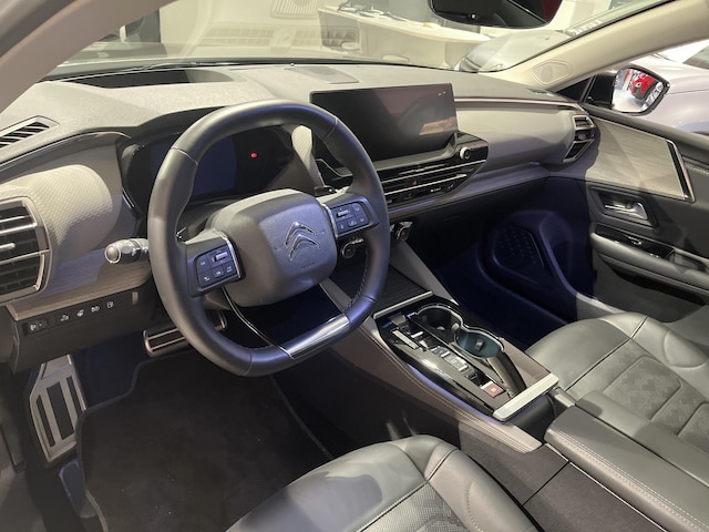 Modern design en bijzondere techniek bepalen de kwaliteiten van de hybride Citroen C5 X. Het is vermeldenswaard dat deze auto maar 28000 kilometer heeft gereden sinds 2023. Uitstekende prestaties op de weg dankzij de verbrandingsmotor én elektromotor. En héél vriendelijk voor het milieu en portemonnee! Basisuitvoering? Niks daarvan! Deze komt met lederen interieur, een elektrisch bediende glazen panorama dak en een elektrisch bedienbare achterklep. De R in de maand? Dan is het tijd voor de luxe van de meegeleverde stoelverwarming! Stramme vingers krijgen 's winters een VIP-behandeling van het verwarmd stuurwiel. Tot de uitrusting van deze Citroen behoren ook 19 inch lichtmetalen velgen, LED koplampen, adaptief dempingsysteem, geluidsisolerende ramen, LED-achterlichten en verstelbare lendensteunen.
