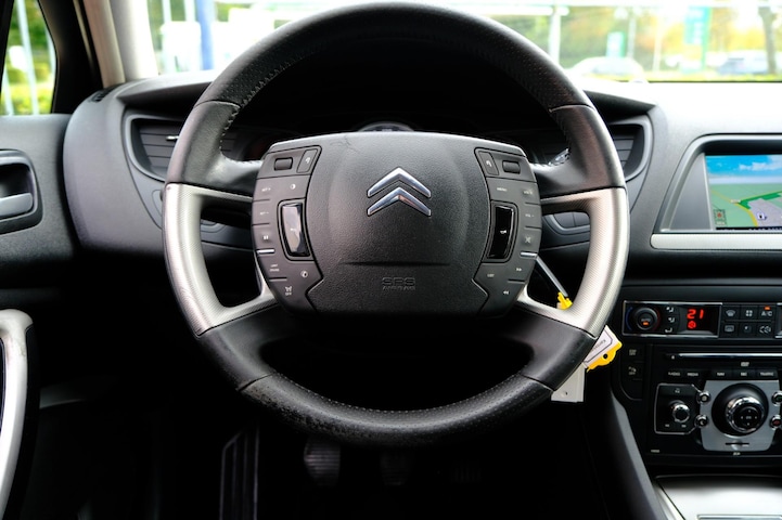 De snelste of zuinigste weg? Het navigatiesysteem aan boord wijst de juiste weg! U verwacht natuurlijk electronic climate control in deze auto, en die is er dan ook. Inparkeren en uitparkeren kost geen enkele moeite dankzij de parkeersensoren. Om de veiligheid onderweg te verhogen, heeft deze Citroen zowel een automatisch inschakelbare verlichting als een regensensor aan boord, zodat hij zelf de verlichting en de ruitenwissers kan inschakelen. Met ingeschakelde cruise control zit u ontspannen achter het stuur. De uitrusting van deze Citroen is met automatisch dimmende binnenspiegel, lederen stuur, centrale deurvergrendeling met afstandsbediening en boordcomputer behoorlijk compleet.