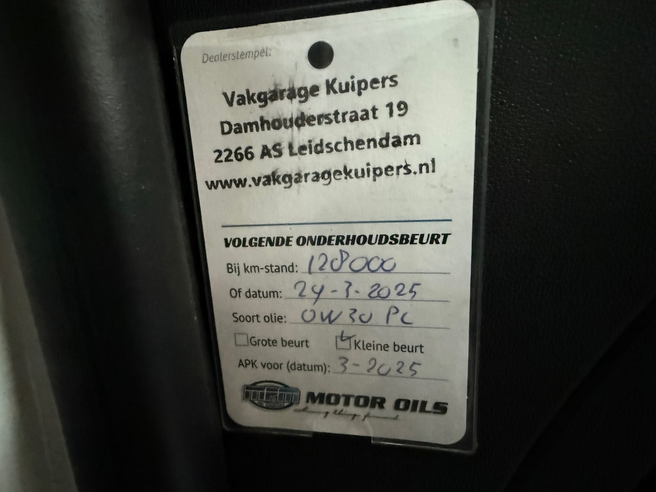 | APK | Bij aflevering |