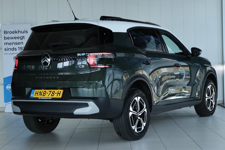 Reed u eerder elektrisch of maakt u voor het eerst kennis met deze techniek? In de Citroën ë-C3 Aircross voelt u zich thuis vanaf het moment dat u instapt. Het rijden met deze auto is werkelijk grenzeloos, want de actieradius is groot genoeg voor allerlei veelvoorkomende ritten en de tijd om de accu's op te laden is prima in te passen in uw dagelijkse bezigheden. De auto heeft een opmerkelijk lage kilometerstand van slechts 7438 Met de comfortstoelen heeft u de zekerheid: elke rit fit door de juiste zit. Tot de voorzieningen van deze auto behoren 17 inch lichtmetalen velgen, LED koplampen, adaptief dempingsysteem, geluidsisolerende ramen, dakspoiler en in delen neerklapbare achterbank. Kommaar-kommaar-kommaar, aldus de achteruitrijcamera. Iedere centimeter vrije ruimte komt haarscherp in beeld. Schadevrij inparkeren maar! Ingebouwde spraakbediening maakt het mogelijk om de auto te bedienen zonder dat uw aandacht wordt afgeleid. Deze Citroën ë-C3 Aircross is 'connected'. Belangrijke functies worden permanent gemeten en zijn uit te lezen via een speciale app, ook op afstand. De kortste weg, de zuinigste weg, de snelste weg... elke weg is te vinden met het full map navigatiesysteem. Natuurlijk is er ook electronic climate control aanwezig. Wat u ook in deze auto kunt vinden zijn draadloos opladen, DAB ontvangst, regensensor, cruise control, automatisch dimmende binnenspiegel en centrale deurvergrendeling met afstandsbediening. Elektronische veiligheidsvoorzieningen helpen u onderweg om de situatie op de weg te beoordelen. Deze systemen waarschuwen u als er een riskante situatie ontstaat, en kunnen in bepaalde gevallen ook zelf ingrijpen. Snelheid, brandstof, navigatie... de head-up display laat het allemaal zien, recht in het zichtveld van de weg. De actuele snelheidslimiet, een inhaalverbod en andere verkeersborden; de verkeersborddetectie ondersteunt u tijdens elke rit. Het Lane-keeping systeem zorgt dat u mooi binnen de lijntjes blijft. Ongemerkt buiten de rijstrook komen is er niet meer bij. Verder is deze auto uitgerust met dodehoekdetectie, hill hold functie, vermoeidheidsherkenning, autonoom remsysteem en bandenspanningcontrolesysteem. Neem contact op voor een proefrit en ervaar de power van elektrisch rijden.
