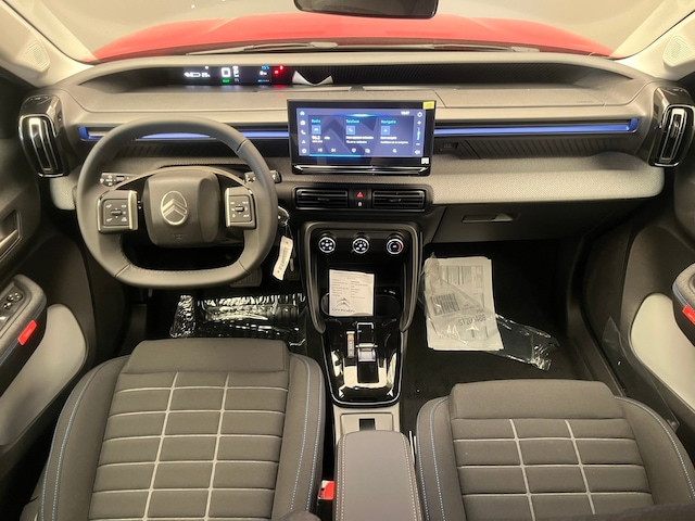 Duurzaam en dynamisch, de Citroën ë-C3 verenigt deze twee uitersten in zich. Dit is een auto uit, er staat 15 kilometer op de teller. Gas geven is er met de elektromotor niet meer bij. Stil snelheid maken wel! Het gaat hier om een nieuwe auto, die uit voorraad leverbaar is. Bij de zeer complete uitrusting van deze auto behoren ook in delen neerklapbare achterbank en dagrijverlichting. Maak uw smartphone echt draadloos, ook bij het opladen. Met de draadloze telefoonlader. Het comfort wordt verhoogd door de aanwezige automatische airconditioning. De aanwezige parkeersensoren zijn de ultieme hulp om te laten weten hoeveel ruimte er nog is om te manoeuvreren. Interval, normaal of high-speed? Bij iedere neerslag reageert de regensensor altijd op gepaste wijze! Cruise control is ook een van de meegeleverde opties. Deze auto is voorzien van isofix-aansluiting, centrale deurvergrendeling met afstandsbediening en in hoogte en diepte verstelbaar stuur. In de Citroën ë-C3 heeft uw veiligheid en die van uw omgeving prioriteit. In het instrumentarium laat de verkeersborddetectie de actuele verkeersborden zien. Als veilige optie heeft deze Citroën ë-C3 lane assist, die u binnen de lijnen van uw rijstrook houdt wanneer u even niet oplet. De Brake Assist geeft een maximale boost aan het remsysteem in een noodsituatie. Zo verkort u de remweg en verkleint u de kans op ongelukken. Ook helpen het driver alert systeem, hill start assist en bandenspanningcontrolesysteem, uw rit tot een veilige rit te maken. Vanzelfsprekend leveren wij deze nieuwe auto met volledige fabrieksgarantie. We maken graag een afspraak met u om deze ë-C3 bij ons te komen bekijken.