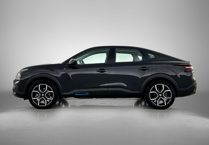 Niet alleen de techniek van deze elektrische Citroen Ë-C4 X is vernieuwend. Ook het ontwerp onderscheidt zich duidelijk van de massa. De elektromotor laat u geluidloos over de weg gaan. Wat een verademing, en zoveel power ook nog! Deze auto uit 2023 heeft nauwelijks gereden, met een tellerstand van slechts 24684 kilometer. Wat valt er verder op aan dit model? Dat is toch zeker het lederen interieur. En niet te vergeten de elektrisch bedienbare achterklep. De comfortstoelen zorgen voor precies de juiste zit, hoe lang de rit ook is. Bij de rijke uitrusting horen ook 18 inch lichtmetalen velgen, Full LED koplampen, adaptief dempingsysteem, geluidsisolerende ramen, in delen neerklapbare achterbank en verstelbare lendensteunen.