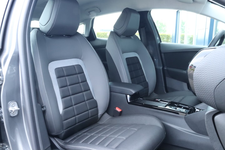 Druk het gaspedaal in en voel de fenomenale kracht van de elektromotor. In een elektrische auto rijdt u tegelijk dynamisch en ontspannen. Wat een rijervaring, die elektromotor. Forse actieradius, nul uitstoot en heerlijk pittig rijgedrag! U hoeft niet langer te wachten, deze splinternieuwe auto is nu direct beschikbaar Een krachtige motor geeft deze auto zijn sportieve prestaties. Donkere en koude maanden? U zit altijd goed dankzij de stoelverwarming. Ook is de auto voorzien van: Full LED koplampen, geluidsisolerende voorruit, elektrische handrem, in delen neerklapbare achterbank en bestuurdersstoel met lendensteunverstelling. De automatische airconditioning zorgt voor een prettige binnentemperatuur. Geen parkeervak is te klein dankzij de assistentie van de parkeersensoren. Is het maar een buitje of een constante regenstroom? De regensensor reageert altijd accuraat! De sloten worden automatisch ontgrendeld dankzij de keyless entry. Fijne optie! Met DAB+ tuner, isofix-aansluiting, centrale deurvergrendeling met afstandsbediening en in hoogte en diepte verstelbaar stuur is deze Citroën helemaal compleet. De automatische veiligheidssystemen in deze Citroën fungeren als een extra paar ogen. En dat niet alleen, ze kunnen ook actief ingrijpen, om zo u en uw passagiers te beschermen. De sensoren kijken vooruit en de lane assist waarschuwt als u ongecontroleerd van baan wisselt. De veiligheid van deze auto wordt verder verhoogd door driver alert systeem, hill start assist en bandenspanningcontrolesysteem. Wordt dit uw nieuwe auto? We verwelkomen u graag om u deze ë-C4 te laten zien, en dan leggen we u ook uit welke financieringsvormen we erbij kunnen aanbieden.