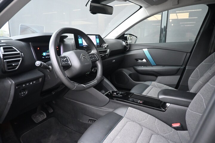 De Citroën ë-C4 vertegenwoordigt de nieuwe generatie auto's en verenigt elektrische kwaliteit en duurzaamheid met elkaar. Eindelijk elektrisch rijden? Deze auto is voorzien van een elektromotor. Dus stil, schoon én snel! Ook een fijne dosis klasse is bijgeleverd, met het lederen interieur. Zit u goed? Nou, zeker wel, met de comfortstoelen! Nooit meer koude handen of koude vingers in de auto. Stuurverwarming zorgt ervoor dat het stuur behaaglijk warm aanvoelt. Ook is de auto voorzien van: 18 inch lichtmetalen velgen, Full LED koplampen, halflederen bekleding, adaptief dempingsysteem, geluidsisolerende ramen en in delen neerklapbare achterbank. Met het digitale dashboard kunt u de cockpit-interface naar uw voorkeur instellen. Met een gerust hart achteruitrijden? Dat kan, dankzij de achteruitrijcamera. Adaptive cruise control houdt de ingestelde snelheid vast en houdt automatisch afstand tot uw voorligger. Loopt het verkeer onderweg vast, schakel dan de file assistent in en laat het systeem zorgen voor de juiste afstand bij stilstaan en rijden. Intelligente spraakbediening herkent uw commando's en voert opdrachten snel en soepel uit. Extra opties op deze auto zijn: connected drive services, navigatiesysteem, achteropkomend verkeer waarschuwing, automatische airconditioning, DAB ontvangst en regensensor. Geavanceerde veiligheidssystemen kijken tijdens elke rit met u mee en schatten continu de risico's in. U hoeft uw ogen niet meer van de weg te halen om dashboardinformatie te checken. De head-up display projecteert het rechtstreeks in uw zichtveld. In het instrumentarium kunt u bovendien de verkeersborden zien die u onderweg tegenkomt. Zo helpt deze Citroën u om veiliger te rijden. Het Lane-keeping systeem zorgt dat u mooi binnen de lijntjes blijft. Ongemerkt buiten de rijstrook komen is er niet meer bij. Dankzij veiligheidsvoorzieningen als dodehoekdetectie, forward collision warning system, hill hold functie, brake assist, vermoeidheidsherkenning en bandenspanningcontrolesysteem, bent u steeds veilig onderweg. Elektrisch rijden is een ervaring op zich. Bel ons voor een afspraak en maak een proefrit!