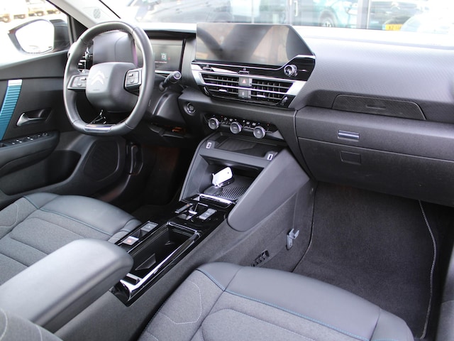 Milieubewust rijden en elke kilometer genieten. Het kan met deze elektrische Citroen Ë-C4. De voordelen van de elektromotor spreken voor zich: stil, schoon en snel! Topklasse: daar hoort leren bekleding absoluut bij. Op koude en donkere dagen zijn de verwarmbare voorstoelen een uitkomst. Zitten in weldadige comfortstoelen : uw rug zal u dankbaar zijn. Bij deze Citroen Ë-C4 is aan alles gedacht, tot en met een verwarmd stuurwiel aan toe. Tot de uitrusting van deze Citroen behoren ook 18 inch lichtmetalen velgen, Full LED koplampen, adaptief dempingsysteem, geluidsisolerende ramen, in delen neerklapbare achterbank en verstelbare lendensteunen.