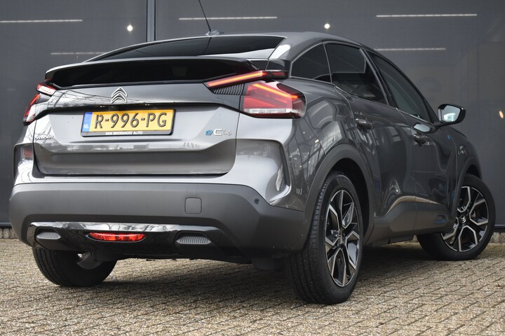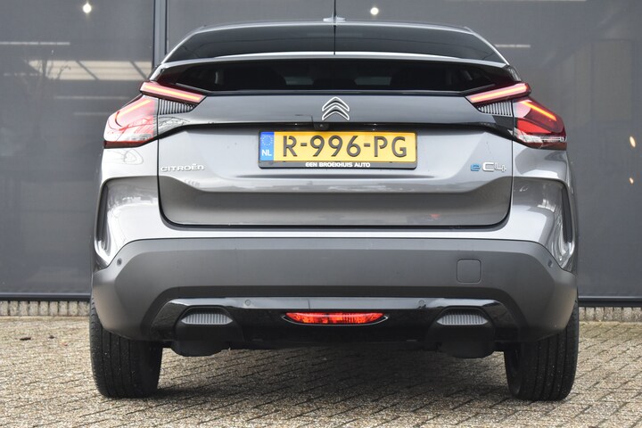 Innovatieve toptechniek en een uitgesproken karakter. De Citroën ë-C4 is een onderscheidende auto met een elektrische aandrijflijn. De aandrijflijn maakt gebruik van de meest moderne accutechniek, zodat het opladen in zo kort mogelijke tijd gebeurt. Het rijbereik van deze auto is groot genoeg om er de meest voorkomende dagelijkse ritten mee te maken. Het stijlvolle lederen interieur geeft deze Citroën ë-C4 net dat beetje extra. In de verwarmbare voorstoelen zitten is elke keer een welkom gevoel. De massagefunctie doet daar nog een schepje bovenop. De comfortstoelen zorgen voor een optimale zithouding onderweg. Pak aan, 't is winter! Zo'n verwarmd stuurwiel is dan bijzonder prettig! Bij de uitrusting van deze auto horen onder meer 18 inch lichtmetalen velgen, Full LED koplampen, halflederen bekleding, adaptief dempingsysteem, geluidsisolerende ramen en in delen neerklapbare achterbank. Het digitale dashboard vertelt u onderweg alles dat bijdraagt aan een veilige, efficiënte rit. De achteruitrijcamera levert eersteklas parkeerservice. U weet precies hoeveel ruimte u nog heeft, in beeld en geluid. Adaptive cruise control is een comfortabele en veilige optie. Het systeem reguleert de snelheid en houdt automatisch afstand tot uw voorligger. Naast handmatige bediening kunt u belangrijke functies met uw stem bedienen dankzij de ingebouwde spraakbediening. De conditie van deze auto is 24/7 inzichtelijk dankzij Connected Services. Met navigatiesysteem, achteropkomend verkeer waarschuwing, automatische airconditioning, DAB ontvangst, regensensor en keyless entry is deze auto helemaal compleet. Elektronische veiligheidsvoorzieningen helpen u onderweg om de situatie op de weg te beoordelen. Deze systemen waarschuwen u als er een riskante situatie ontstaat, en kunnen in bepaalde gevallen ook zelf ingrijpen. U hoeft uw ogen niet meer van de weg te halen om dashboardinformatie te checken. De head-up display projecteert het rechtstreeks in uw zichtveld. Onderweg zorgt verkeersborddetectie ervoor dat u geen waarschuwingsbord mist. Het Lane-keeping systeem let constant op en waarschuwt of corrigeert als u onoplettend over de lijnen van de rijstrook gaat. Dankzij veiligheidsvoorzieningen als dodehoekdetectie, forward collision warning system, hill hold functie, brake assist, vermoeidheidsherkenning en bandenspanningcontrolesysteem, bent u steeds veilig onderweg. Wanneer wilt u een proefrit maken? Neem contact op en we maken een afspraak voor een muisstille rit in deze elektrische droomauto!