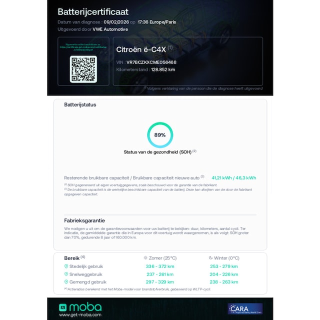 Accu laden: Type 2, 3-fasen, 11 kW, 81 km actieradius per uur, compleet vol in 13 uur en 53 minuten