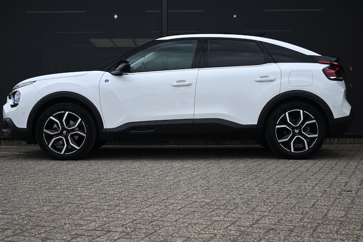 Intelligente technologie. Geen emissies en een fantastisch rijgedrag. Welkom in de Citroën ë-C4. Dankzij de automatische transmissie en elektrische aandrijving, navigeert u gemakkelijk door het verkeer. Het interieur is luxe uitgevoerd met leren bekleding. In de verwarmbare voorstoelen zitten is elke keer een welkom gevoel. De massagefunctie doet daar nog een schepje bovenop. De comfortstoelen geven precies de juiste ondersteuning voor rug en schouders. Een verwarmd stuurwiel overbodige luxe? Wacht maar tot het kouder wordt! Ook 18 inch lichtmetalen velgen, Full LED koplampen, adaptief dempingsysteem, geluidsisolerende ramen, in delen neerklapbare achterbank en verstelbare lendensteunen horen tot de voorzieningen op deze auto. Wat ook opvalt, is de strakke en overzichtelijke informatie die het digitale dashboard levert. Met behulp van de achteruitrijcamera kunt u zo strak inparkeren als u maar wilt! Adaptive cruise control is een comfortabele en veilige optie. Het systeem reguleert de snelheid en houdt automatisch afstand tot uw voorligger. Handig en veilig: Connected Services. Alle vitale functies en data van de auto checkt u via de app op uw smartphone. Het complete geluidsspectrum van de hi-fi krijgt een extra boost door het high performance audiosysteem. Ook dashboard met spraakbediening, navigatiesysteem, achteropkomend verkeer waarschuwing, automatische airconditioning, draadloos opladen en DAB ontvangst horen tot de voorzieningen op deze auto. Met de nieuwste technologieën aan boord is deze Citroën in staat om zelf te reageren op potentieel gevaarlijke situaties op de weg. U hoeft uw ogen niet meer van de weg te halen om dashboardinformatie te checken. De head-up display projecteert het rechtstreeks in uw zichtveld. In het instrumentarium kunt u bovendien de verkeersborden zien die u onderweg tegenkomt. Zo helpt deze Citroën u om veiliger te rijden. Het Lane-keeping systeem let constant op en waarschuwt of corrigeert als u onoplettend over de lijnen van de rijstrook gaat. Verder is deze auto uitgerust met dodehoekdetectie, forward collision warning system, hill hold functie, brake assist, vermoeidheidsherkenning en bandenspanningcontrolesysteem. Nederland is oplaadland. De kansen voor elektrische auto's zijn nergens zo hoog. Pak de praktische voordelen! Of liever even uitproberen? Bel dan voor een proefritafspraak.
