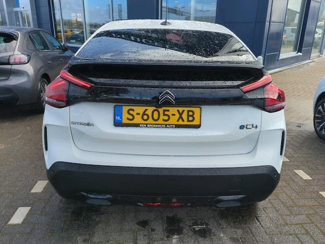 Hij levert uitstekende prestaties en doet dat met zorg voor het milieu. Maar tegelijk is de Citroën ë-C4 ook gewoon een auto die u volop ruimte en comfort biedt. Dit is een auto uit het bouwjaar 2023, hij heeft 35493 kilometer gelopen. Gas geven is er met de elektromotor niet meer bij. Stil snelheid maken wel! Heerlijk comfortabel zitten, en genieten van stijlvolle kwaliteit? Deze auto heeft een fraai lederen interieur. In de verwarmbare voorstoelen zitten is elke keer een welkom gevoel. De massagefunctie doet daar nog een schepje bovenop. De comfortstoelen zorgen voor een optimale zithouding onderweg. Nooit meer koude handen of koude vingers in de auto. Stuurverwarming zorgt ervoor dat het stuur behaaglijk warm aanvoelt. Bij de uitrusting van deze Citroën horen onder meer 18 inch lichtmetalen velgen, Full LED koplampen, adaptief dempingsysteem, geluidsisolerende ramen, in delen neerklapbare achterbank en verstelbare lendensteunen. Het digitale dashboard vertelt u alles wat u wilt weten voor een slimme, comfortabele en veilige rit. Wat een gemak, die achteruitrijcamera. Alles in beeld zonder capriolen. Als u de adaptive cruise control inschakelt, regelt de auto zelf de snelheid en de afstand tot de auto voor u. Bedient u de auto liever met uw stem? Dan is het goed om te weten dat spraakbediening aanwezig is. Uw smartphone wordt een dashboard, met alle functies in beeld. Dankzij Connected Services en de speciale app. Natuurlijk behoren premium audiosysteem, navigatiesysteem, achteropkomend verkeer waarschuwing, automatische airconditioning, draadloos opladen en DAB ontvangst ook tot de uitrusting van deze complete auto. Met de nieuwste technologieën aan boord is deze Citroën in staat om zelf te reageren op potentieel gevaarlijke situaties op de weg. Blik op de weg houden? U hoeft uw hoofd niet meer te draaien om het dashboard te zien, dankzij de head-up display. In het instrumentarium ziet u tijdens de rit ook de belangrijkste verkeersborden aangegeven, die de auto automatisch voor u leest. Onbedoeld buiten de rijstrook raken wordt voorkomen door het Lane-keeping systeem. Bovenop deze veiligheidsfeatures heeft deze Citroën bovendien dodehoekdetectie, forward collision warning system, hill hold functie, brake assist, vermoeidheidsherkenning en bandenspanningcontrolesysteem. Ook een elektrische auto bewijst zichzelf het beste met een proefrit. Neem contact op en we maken meteen een afspraak!