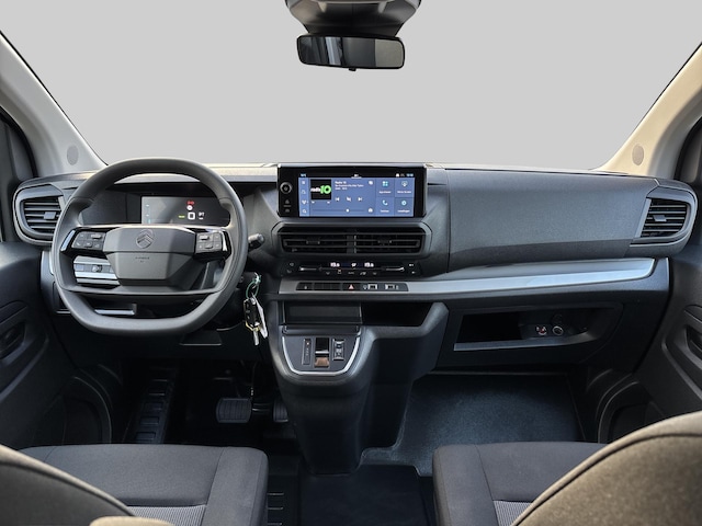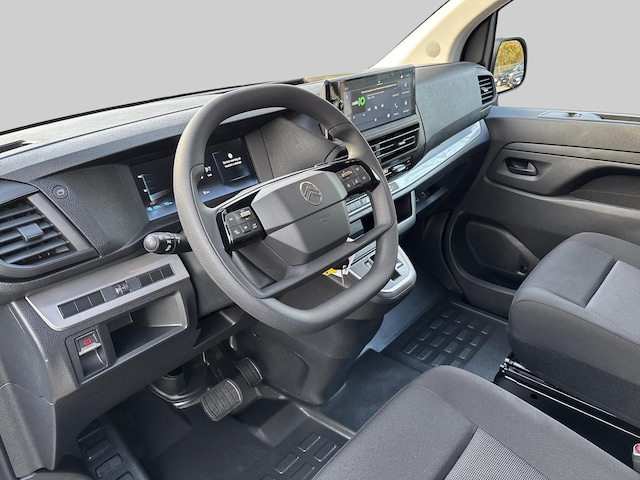 In het interieur staat gebruiksgemak centraal. Het grote 10-inch touchscreen met navigatie, Mirror Screen, Bluetooth en Citroën Connect Services geeft je directe toegang tot alle functies en informatie. De automatische airconditioning zorgt voor een aangename temperatuur voor alle passagiers, terwijl de twee schuifdeuren het in- en uitstappen bijzonder gemakkelijk maken. Dankzij de stille elektromotor, royale binnenruimte en verfijnde ophanging rijdt de ë-Jumpy uitzonderlijk comfortabel, zowel in stadsverkeer als op de snelweg.
