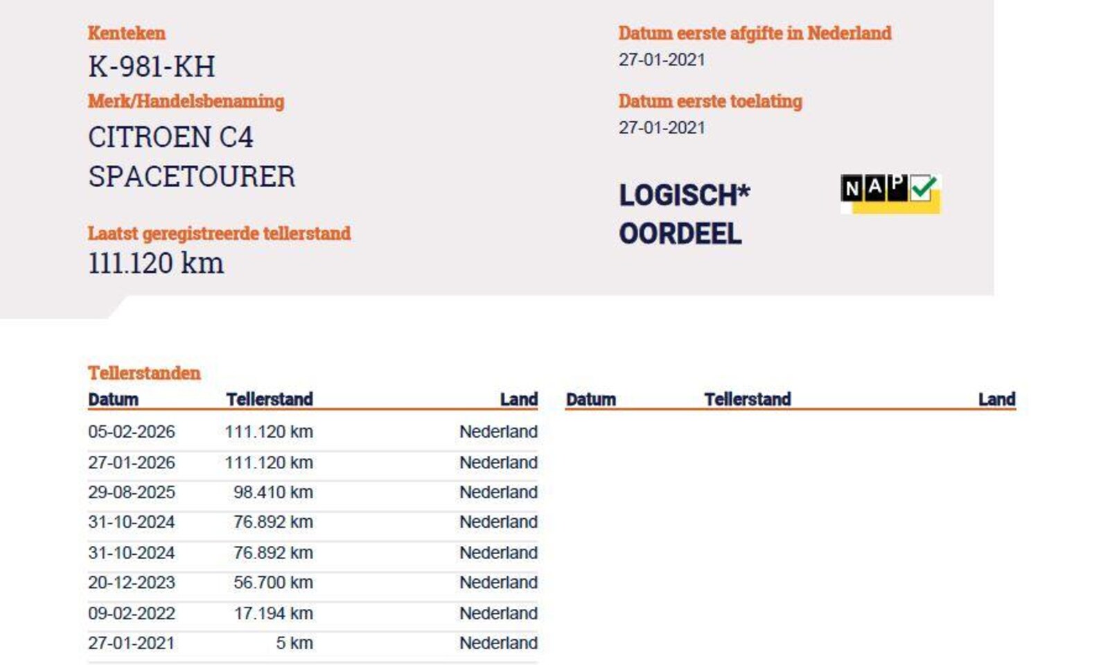 | Kilometerstand | 111.190 km |
