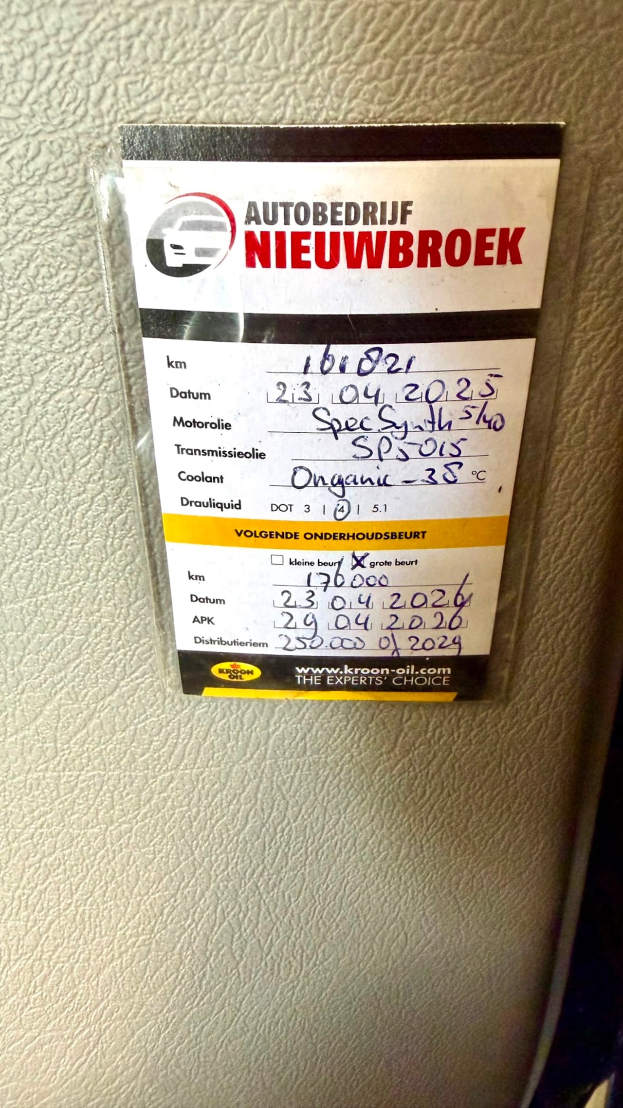 | APK | Bij aflevering |