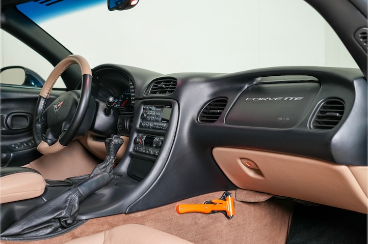 Geheel originele Navy Blue 2001 Corvette met LightOak interrieur, uitvoering 1SC( full options):