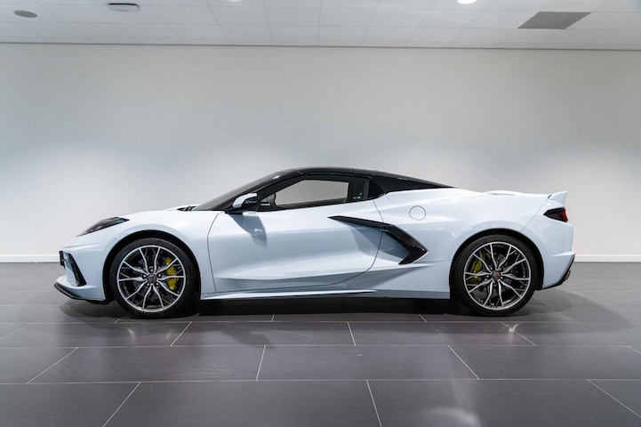 Maak kennis met de Corvette C8 Stingray Convertible. Open rijden zoals het hoort, met een 6,2 liter V8 die 495 pk en 637 Nm levert. Met de achterwielaandrijving en een razendsnelle 8-traps automaat ben je in een paar seconden bij de 100 km/h. Het mooie van deze lichte kleur combinatie is dat alle details van de auto moot geaccentueerd worden. Waardoor alle vormen mooi zichtbaar worden. De kleur combinatie is Matrix Grey Metallic gecombineerd met Donker Grijs Alcantara met subtiel gele stiksels, Gordels, 12 O’Clock marker en Remklauwen.