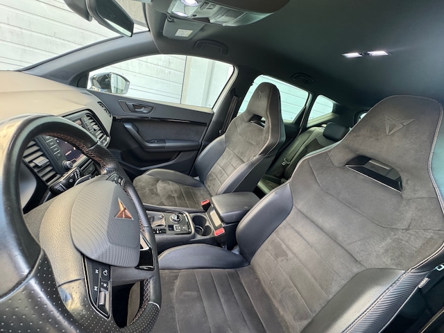 Deze auto is voorzien van een digitaal dashboard waarmee u de cockpit-interface kunt personaliseren. Met de 360 graden camera, verzorgd door vier camera's, wordt rijden in drukke steden of het navigeren in nauwe ruimtes een koud kunstje. Als u de adaptive cruise control inschakelt, regelt de auto zelf de snelheid en de afstand tot de auto voor u. De hoorbare sensatie van het high performance audiosysteem is een ervaring op zich. Geef uw smartphone onderweg weer energie; zonder snoer, met de draadloze oplaadmogelijkheid voor telefoons. Uiteraard voorzien van Qi-technologie. Ook is de CUPRA uitgerust met: dashboard met spraakbediening, navigatiesysteem met harde schijf, automatische airconditioning, sportstuur met schakelpaddels, DAB ontvangst en regensensor.