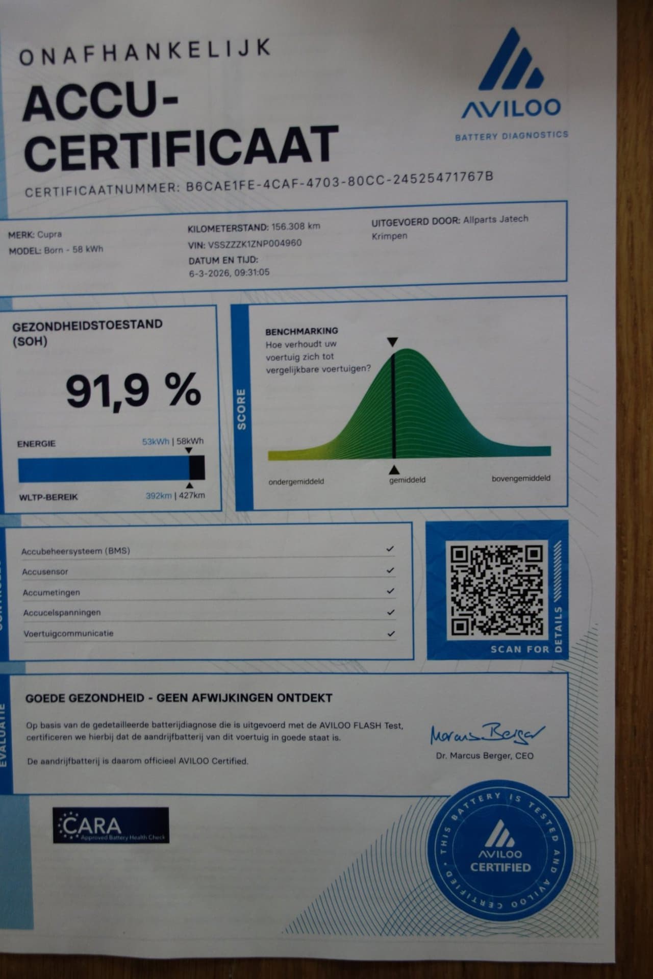 Performance One 62 kWh SOH 91%