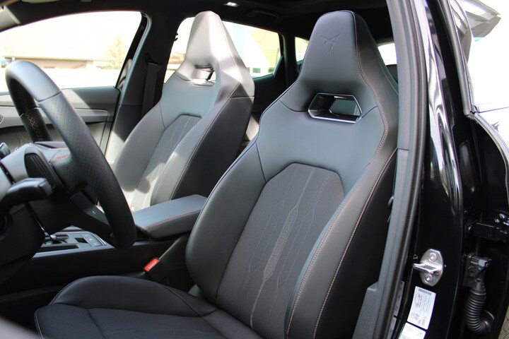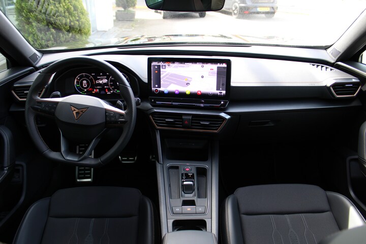 Met zijn inventieve techniek is de hybride CUPRA Formentor tegelijk comfortabel en zuinig met brandstof. Dit dealeronderhouden exemplaar is van het bouwjaar 2023, hij heeft 27735 kilometer op de teller staan. Elektrisch rijden of benzine? Deze hybride CUPRA Formentor combineert de pluspunten van allebei naar keuze. De verwarmbare voorstoelen benadrukken nog maar eens dat we hier te maken hebben met een regelrechte verwenauto voor bestuurder en bijrijder. In het interieur domineren de sportstoelen, die er niet alleen stijlvol uitzien, maar die jou ook optimaal ondersteunen tijdens de rit. Het interieur baadt in daglicht dankzij het elektrisch bediende glazen panoramadak. De elektrische achterklep opent met een druk op de knop, zodat jij gemakkelijk toegang heeft tot de bagageruimte. Ook 19 inch lichtmetalen velgen, Full LED koplampen, adaptief dempingsysteem, donker getint glas achter, in delen neerklapbare achterbank en LED-achterlichten zijn aan boord.
