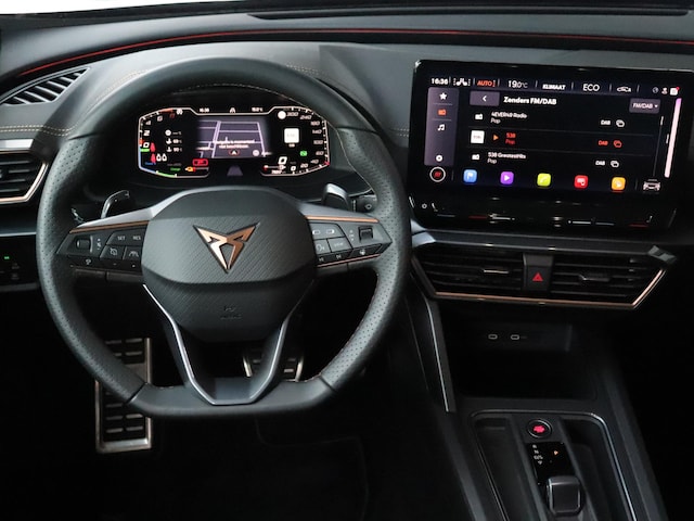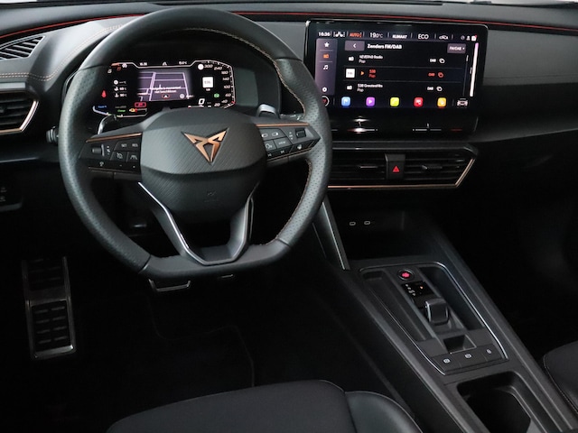 Je zult verrukt zijn van de digitale wereld van mobiliteit; het digitale dashboard projecteert alles wat jij nodig hebt om jouw rit aangenaam en veilig te maken. Met de achteruitrijcamera zie jij wat er achter de auto gebeurt. Zo rij je moeiteloos achteruit. Adaptive cruise control houdt de ingestelde snelheid vast en houdt automatisch afstand tot jouw voorligger. Na een lange werkdag in de file: daar zit niemand op te wachten. Gelukkig helpt de file assistent een handje. Het radarsysteem meet de ruimte tot de voorligger en bewaakt de juiste afstand. Stilstaan? Dan remt en stopt de auto vanzelf. Ook heerlijk simpel is de elektrisch inklapbare trekhaak. Je bent in deze CUPRA ook voorzien van full map navigatiesysteem, electronic climate control, draadloos opladen, DAB ontvangst, regensensor en keyless entry.
