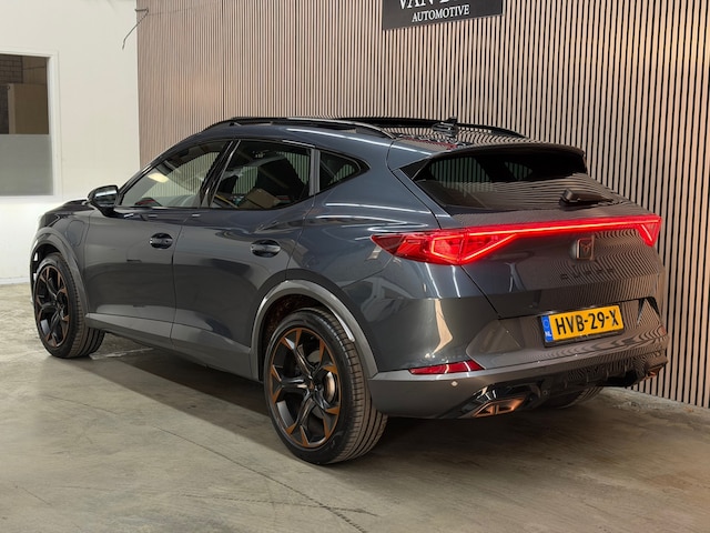 Laat u niets wijsmaken, deze Cupra Formentor biedt alles wat u van een auto verlangt. De aandrijving van deze Cupra wordt verzorgd door een viercilinder motor en een automatische transmissie. Dat noemen ze nou een ruimtelijk effect: het elektrisch bediende glazen panorama dak, dat net zo gemakkelijk open en dicht gaat als de elektrisch bedienbare achterklep. En ondertussen het ware luxegevoel van het lederen interieur. Er is stoelverwarming aanwezig in deze auto. Pak aan, 't is winter! Zo'n verwarmd stuurwiel is dan bijzonder prettig! Natuurlijk behoren LED koplampen, extra getint glas, in delen neerklapbare achterbank, LED-achterlichten, verstelbare lendensteunen en snelheidsafhankelijke stuurbekrachtiging ook tot de uitrusting van deze complete auto.