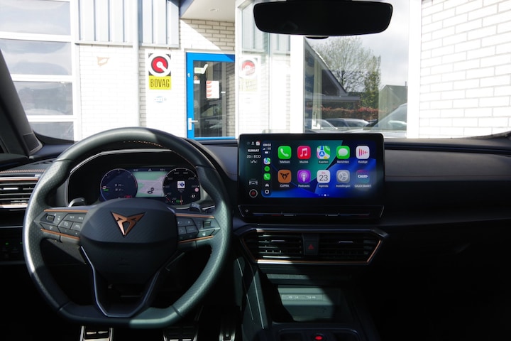 Het digitale dashboard is qua lay-out en zichtbaarheid superslim ingedeeld. Alle functies in één keer in beeld! De achteruitrijcamera laat duidelijk zien hoeveel ruimte u nog heeft bij het inparkeren. Adaptive cruise control is een comfortabele en veilige optie. Het systeem reguleert de snelheid en houdt automatisch afstand tot uw voorligger. Naast handmatige bediening kunt u belangrijke functies met uw stem bedienen dankzij de ingebouwde spraakbediening. Deze Cupra Formentor is voorzien van een elektrisch inklapbare trekhaak voor als u met een caravan of aanhanger op pad wilt. Deze auto is voorzien van navigatiesysteem, automatische airconditioning, draadloos opladen, DAB ontvangst, regensensor en keyless entry.