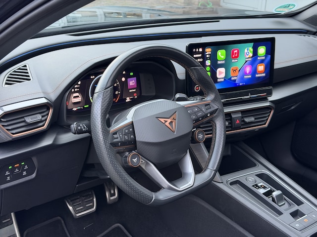 Aan boord van deze CUPRA houden verschillende geavanceerde systemen voor u de weg in de gaten. Ze waarschuwen u voor noodsituaties en kunnen in een aantal gevallen ook zelf ingrijpen. De actuele snelheidslimiet, een inhaalverbod en andere verkeersborden; de verkeersborddetectie ondersteunt u tijdens elke rit. Het Lane-keeping systeem zorgt dat u mooi binnen de lijntjes blijft. Ongemerkt buiten de rijstrook komen is er niet meer bij. Forward collision warning waarschuwt bij een dreigende aanrijding en vermindert de gevolgen van een ongeval. U bent mede dankzij dodehoekdetectie, hill hold functie, vermoeidheidsherkenning, autonoom remsysteem en bandenspanningcontrolesysteem steeds veilig onderweg.