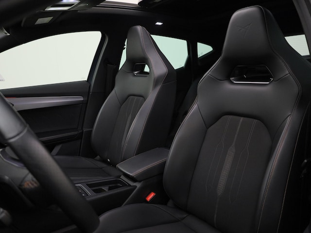 Deze CUPRA is voorzien van verschillende intelligente veiligheidsvoorzieningen. Ze kijken tijdens het rijden als het ware met u mee, ze signaleren potentieel gevaarlijke situaties en in een aantal gevallen kunnen ze ook ingrijpen. Verkeersbord-detectie herkent verkeersborden en toont deze op het instrumentarium van de auto. Onbedoeld buiten de rijstrook raken wordt voorkomen door het Lane-keeping systeem. Forward collision warning helpt u om kop-staart aanrijdingen te voorkomen. Bovenop deze veiligheidsfeatures heeft deze CUPRA bovendien dodehoekdetectie, front assist, hill hold functie, vermoeidheidsherkenning, autonoom remsysteem en bandenspanningcontrolesysteem.