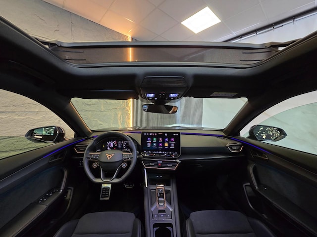Laat u niets wijsmaken, deze CUPRA Formentor biedt alles wat u van een auto verlangt. Een viercilinder motor en een automatische transmissie zorgen voor de uitstekende prestaties van deze auto. Niets geeft meer gevoel van luxe en comfort dan een lederen interieur. Ook dat is hier meegeleverd Dankzij de elektrische stoelbediening is het gemakkelijk om de optimale zitpositie te vinden. De elektrisch bedienbare achterklep opent met een druk op de knop. Al is het nog zo fris, koude handen zijn verleden tijd door het verwarmd stuurwiel. De koplampen met matrix LED-verlichting geven daglichtkwaliteit zonder tegenliggers te hinderen. Bij de uitrusting van deze auto horen onder meer schuif- en kanteldak, extra getint glas, in delen neerklapbare achterbank, LED-achterlichten en snelheidsafhankelijke stuurbekrachtiging.