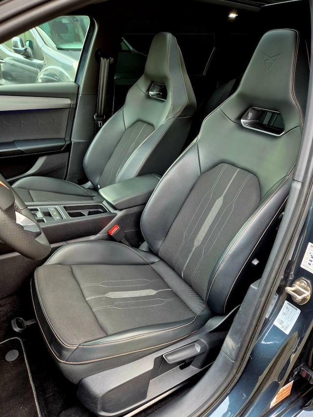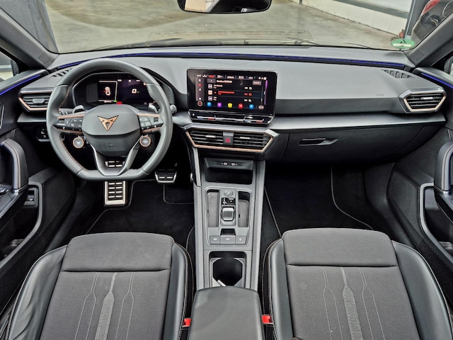 Het zal u verbazen hoe deze auto in staat is om voor u de omgeving en het verkeer om u heen in de gaten te houden. U rijdt ook veiliger omdat deze auto voor u de verkeersborden langs de weg kan lezen. De belangrijkste borden worden op uw instrumentarium geprojecteerd, zodat u ze niet kunt missen. Het Lane-keeping systeem zorgt voor een automatisch constante positie binnen de rijstrook. Afdwalen is uitgesloten. De forward collision warning geeft een botswaarschuwing als een aanrijding dreigt met een voorligger. In deze Cupra vinden we verder een dodehoekdetectie, accident avoidance system, hill hold functie, vermoeidheidsherkenning en bandenspanningcontrolesysteem.